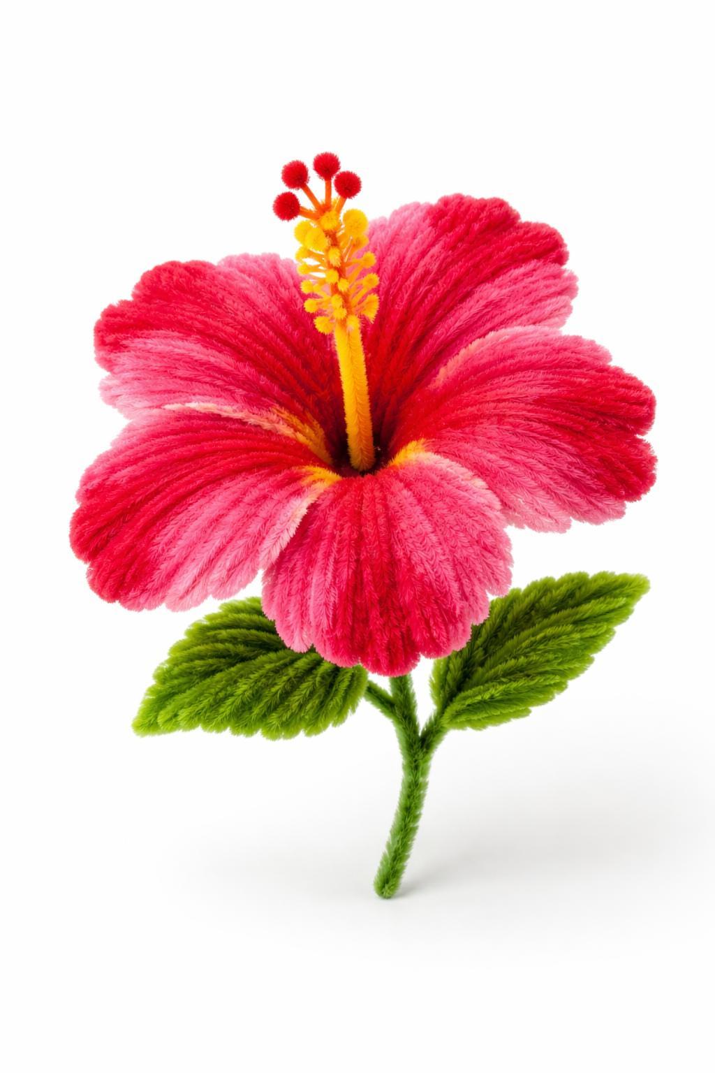 Flor artesanal inspirada en la exuberancia tropical. Fabricada con limpiapipas de colores vivos que evocan el encanto del hibisco natural, simboliza alegría, hospitalidad y vitalidad. Perfecta para ambientes alegres o decoraciones veraniegas.
